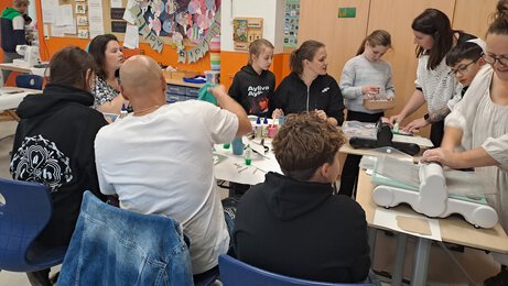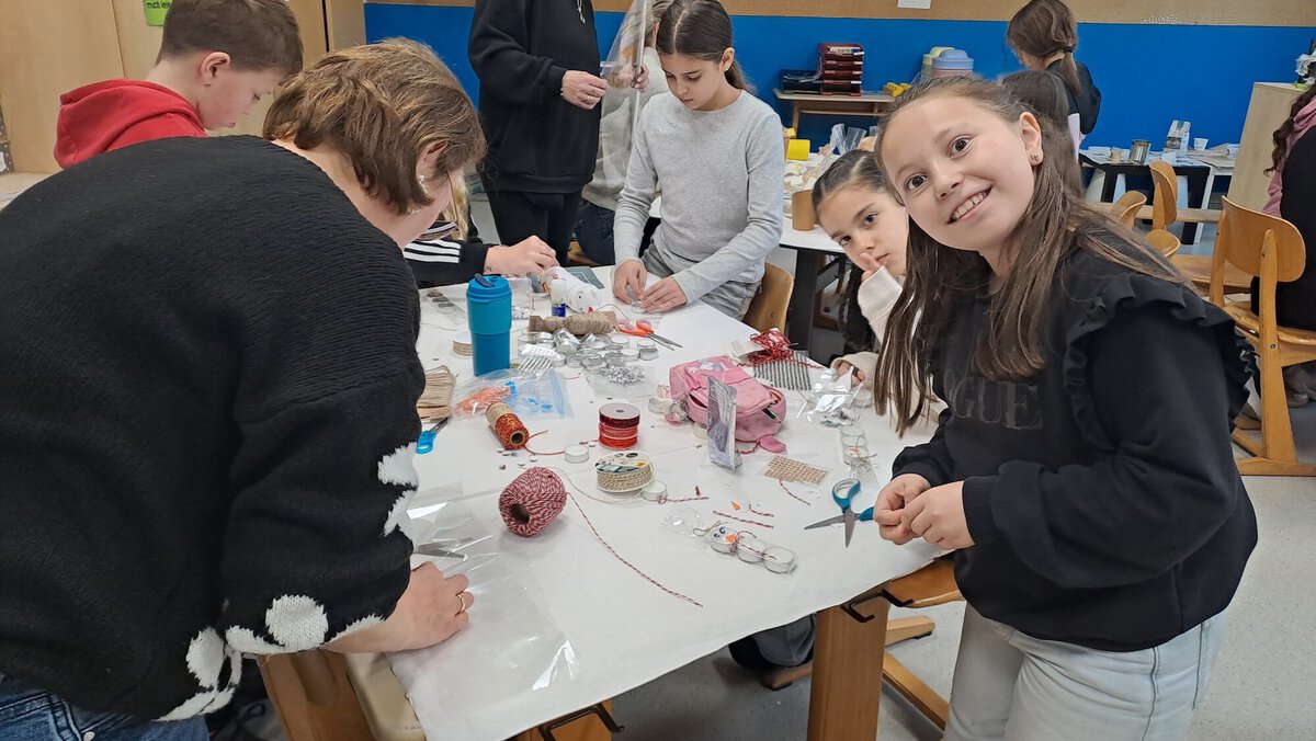 Kinder, Eltern und Lehrerinnen der Klassen 4a und 4b bereiteten sich gemeinsam auf den Weihnachtsmarkt der Schule am Luisenhof vor.
